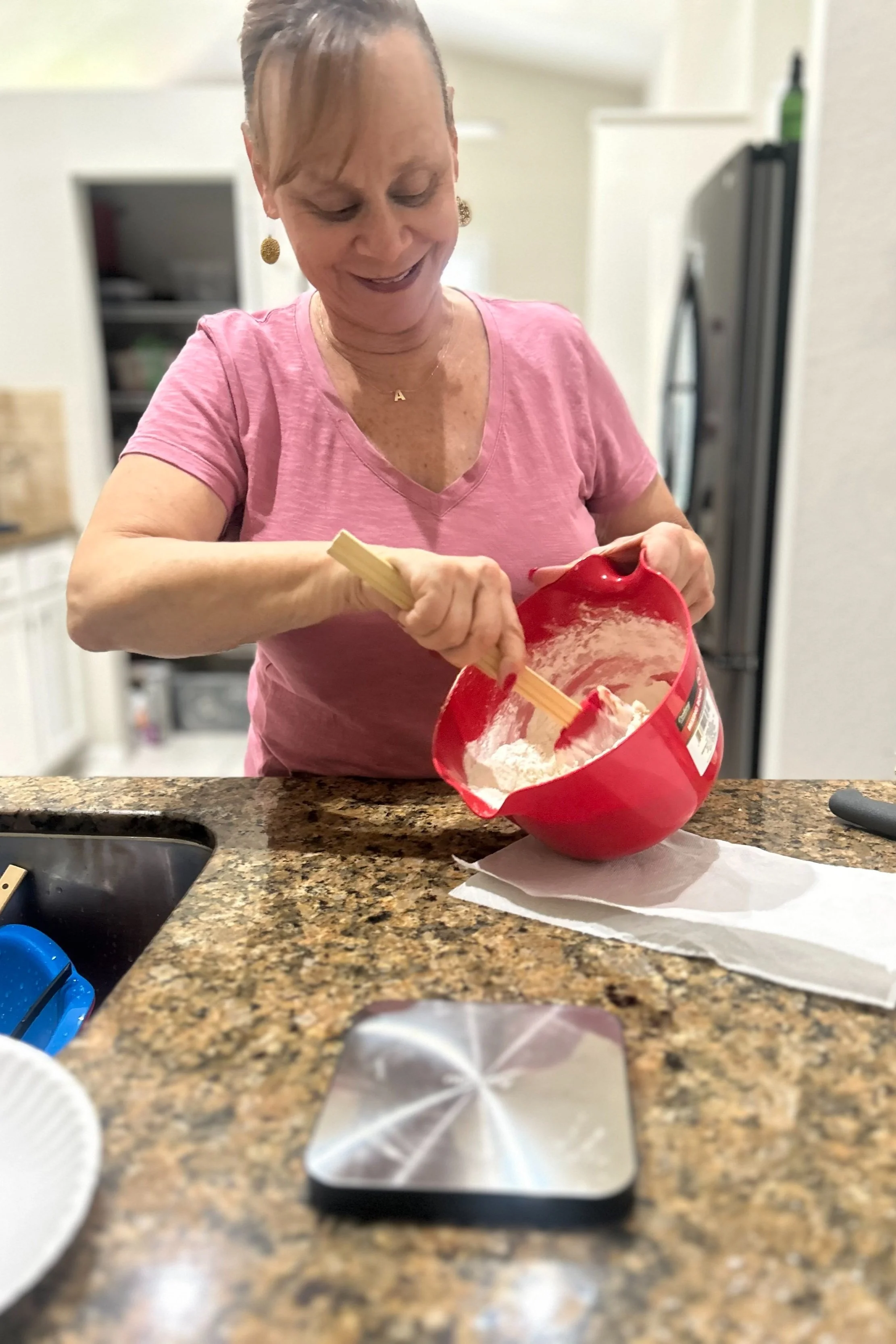 I am a mom, wife, and daughter. Most importantly, I am a woman of this generation who has stayed strong through her journey of 60+ years. There is pure joy in seeing the smile and the tilt of someone’s head when they take a bite of my creation. I may be tough on the outside, saying, “Do not mess with my family,” but I am a softie who will do almost anything for my family and friends. I feel safest when we are all together, sitting at the table and sharing everything.